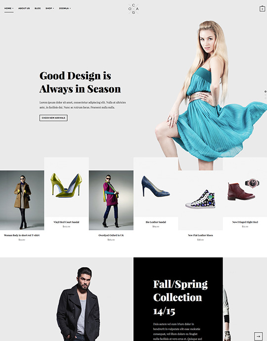 Dengan desain yang cerdas, tiga homepage yang berbeda, klasik hitam & putih, TMN Cagox pasti akan bertahan dalam ujian waktu sebagai toko fashion online dan membantu Anda mempromosikan bisnis pakaian Anda.