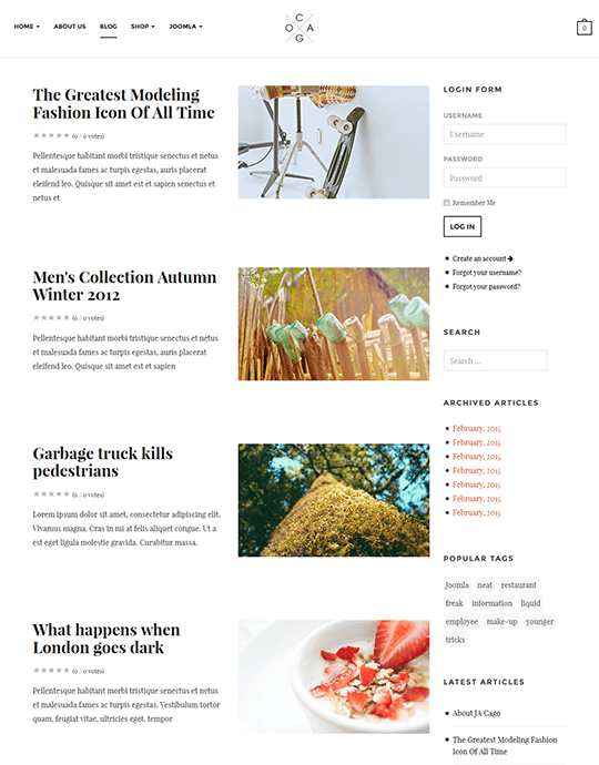 TMN Cagox akan memiliki kedua PayCart dan VirtueMart komponen untuk pengalaman belanja online yang intuitif. Mode Template ini juga dilengkapi dengan asli blog Joomla kustom, tidak perlu menginstal solusi pihak ke-3.
